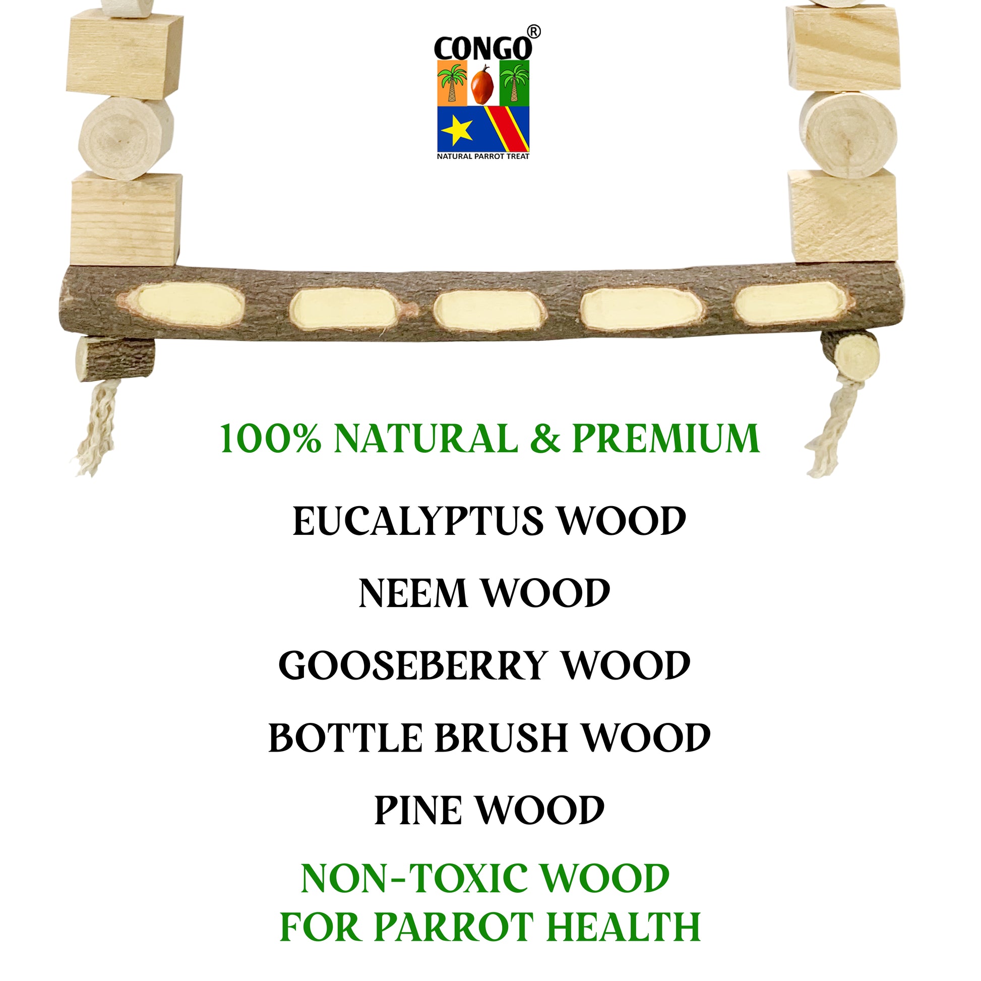 Congo® 18X24 Inch Wooden Decorative Swing Toy for for African Grey, Macaw, Cockatoos, Amazon and Other Big Birds (Piece of 1)