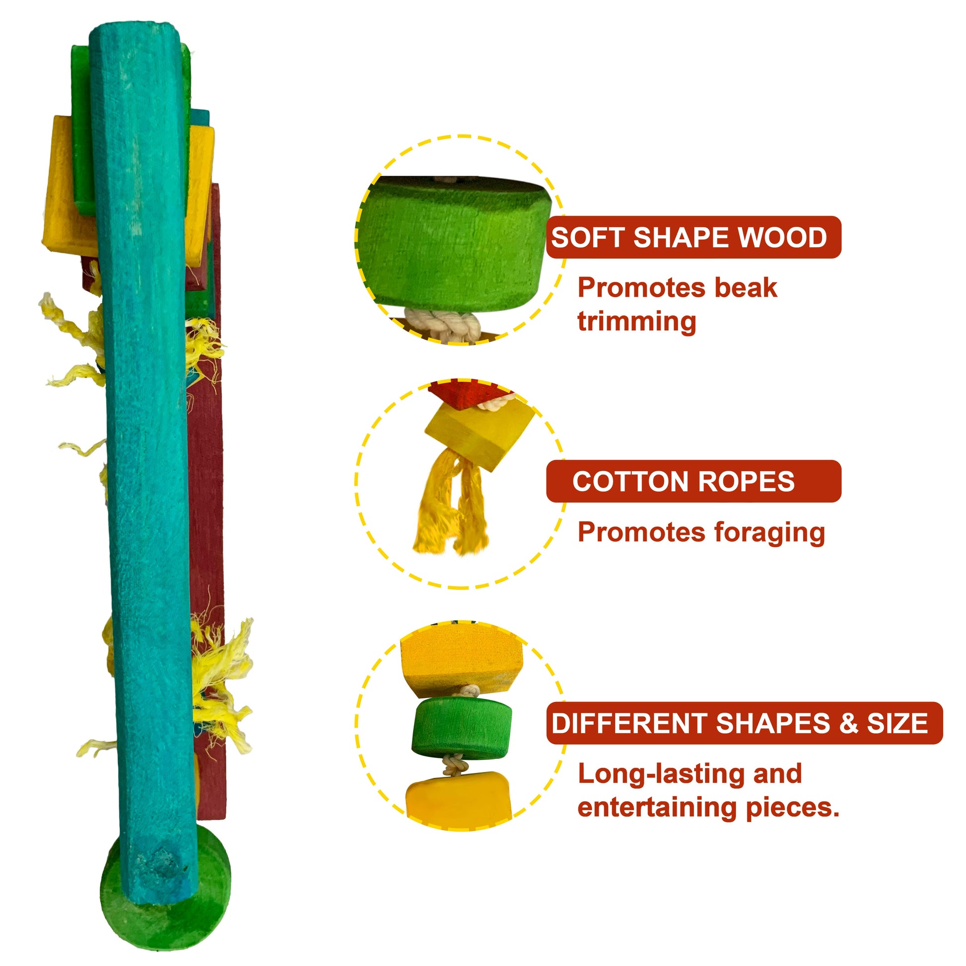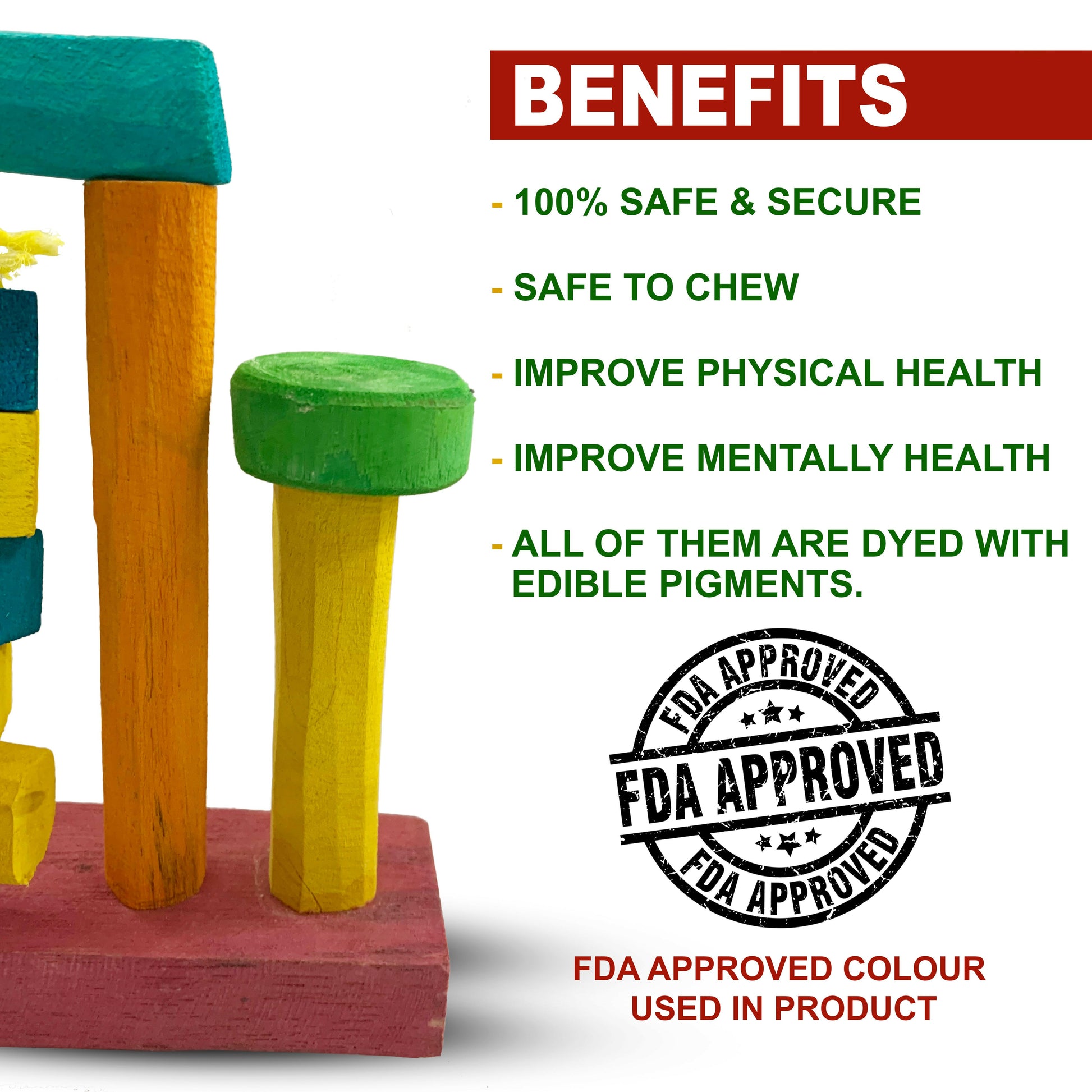 CONGO Natural Parrot Treat Non-Toxic Wooden Colored Playing & Chewing Bird toy play a very important role in keeping them engaged or making them feel lively even in the cage or in absence of the owner. Generally, the owner can't take care of birds the whole day in such a situation science says that there should be a simulator. Bird toys are nothing but the simulator. Young Birds continuously play with these toys and this playtime forms the learning period in their life. Birds learn textures, colors, and shapes.