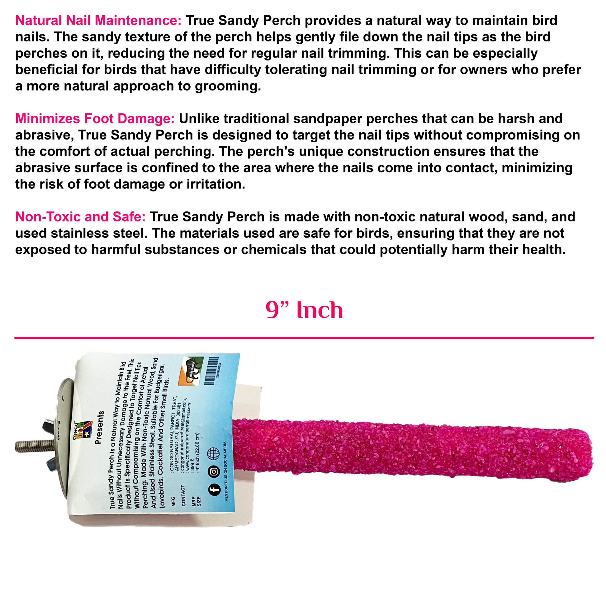 Congo 9 inch True Sandy Sand Perch for Specially Nail Grinding for Lovebirds, Cockatiel and Other Small Birds (9 Inch)