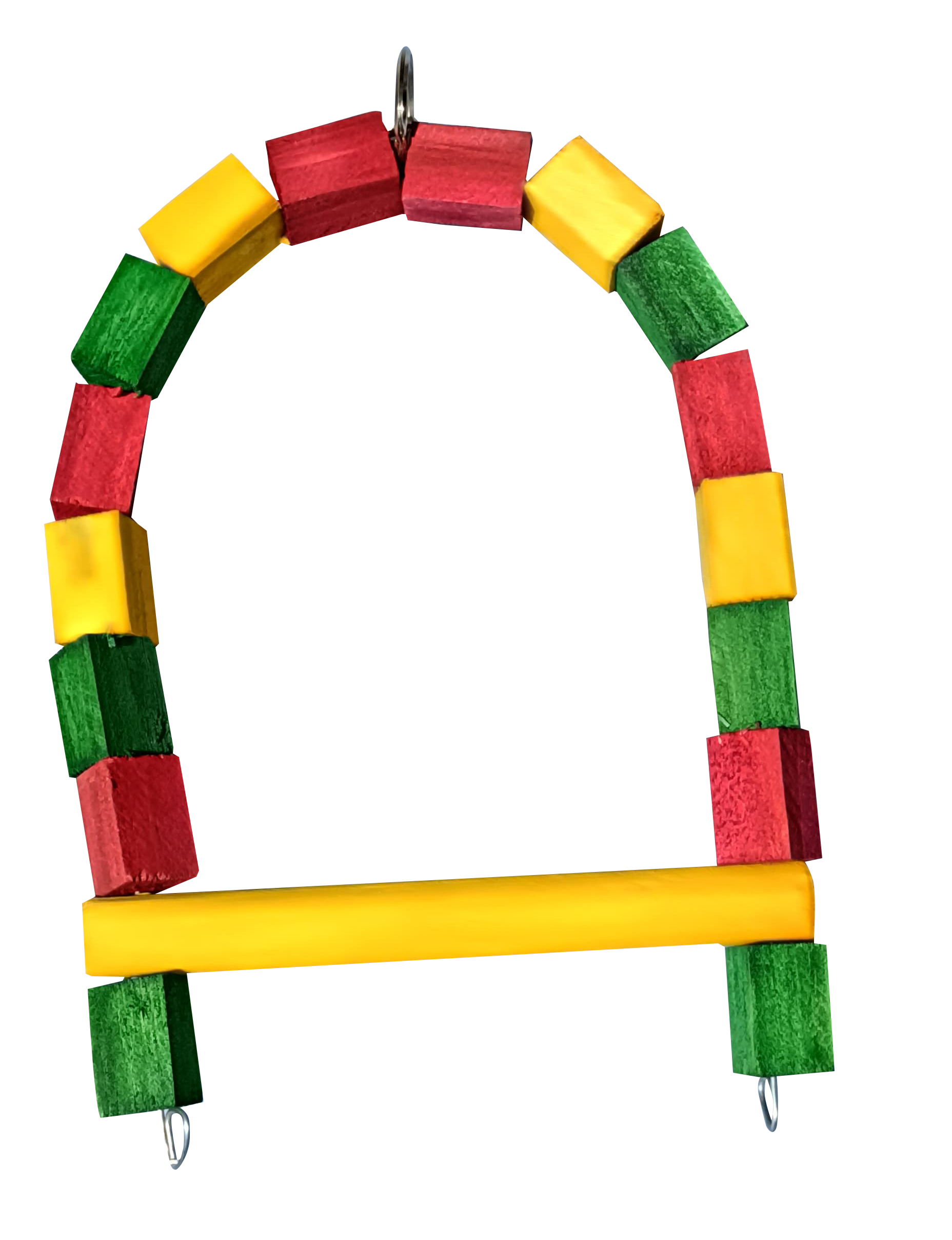 PERFECT SIZE -- Suitable for many Parrot. Size 7In in wide x 7 In high. NATURAL WOODEN SWING--- Made out of blocks that are carved out of solid wood and dyed with food coloring, these hanging bird toys make an excellent selection for birds who have a tendency to chew, bite, forage and hide their treats. YOUR BIRDS LOVE TO SWING-- Stimulates Healthy Exercise and Satisfies a Bird’s Preening Instinct. Parrots love perches that move, so this is the ideal moving perch for your parrot! MULTICOLORED: The rainbow of colors and the frayed texture of the rope featured in the design of these super fun wood bird toys intrigue and engage your parrot in order to encourage instinctive foraging behavior, thus extending and boosting playtime!