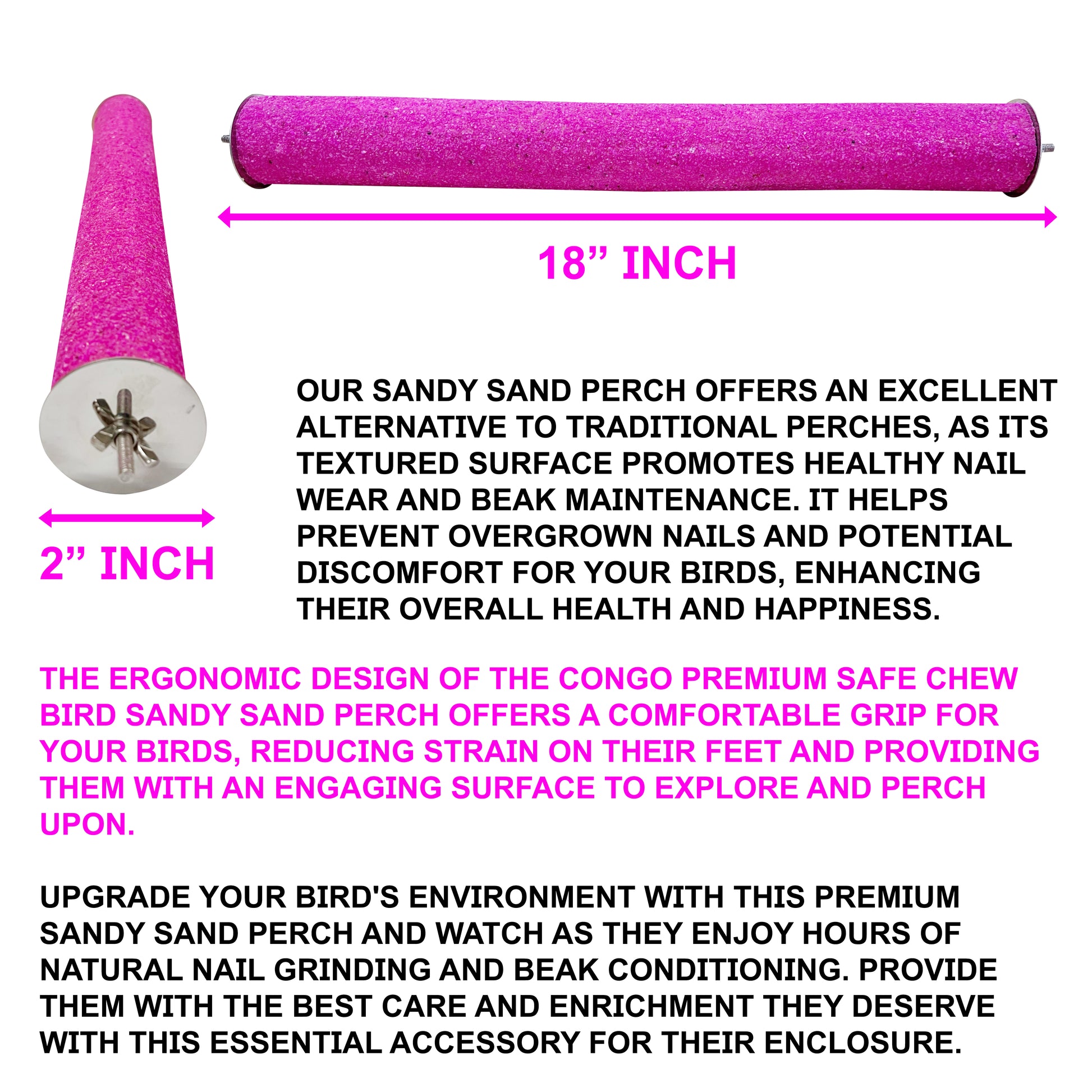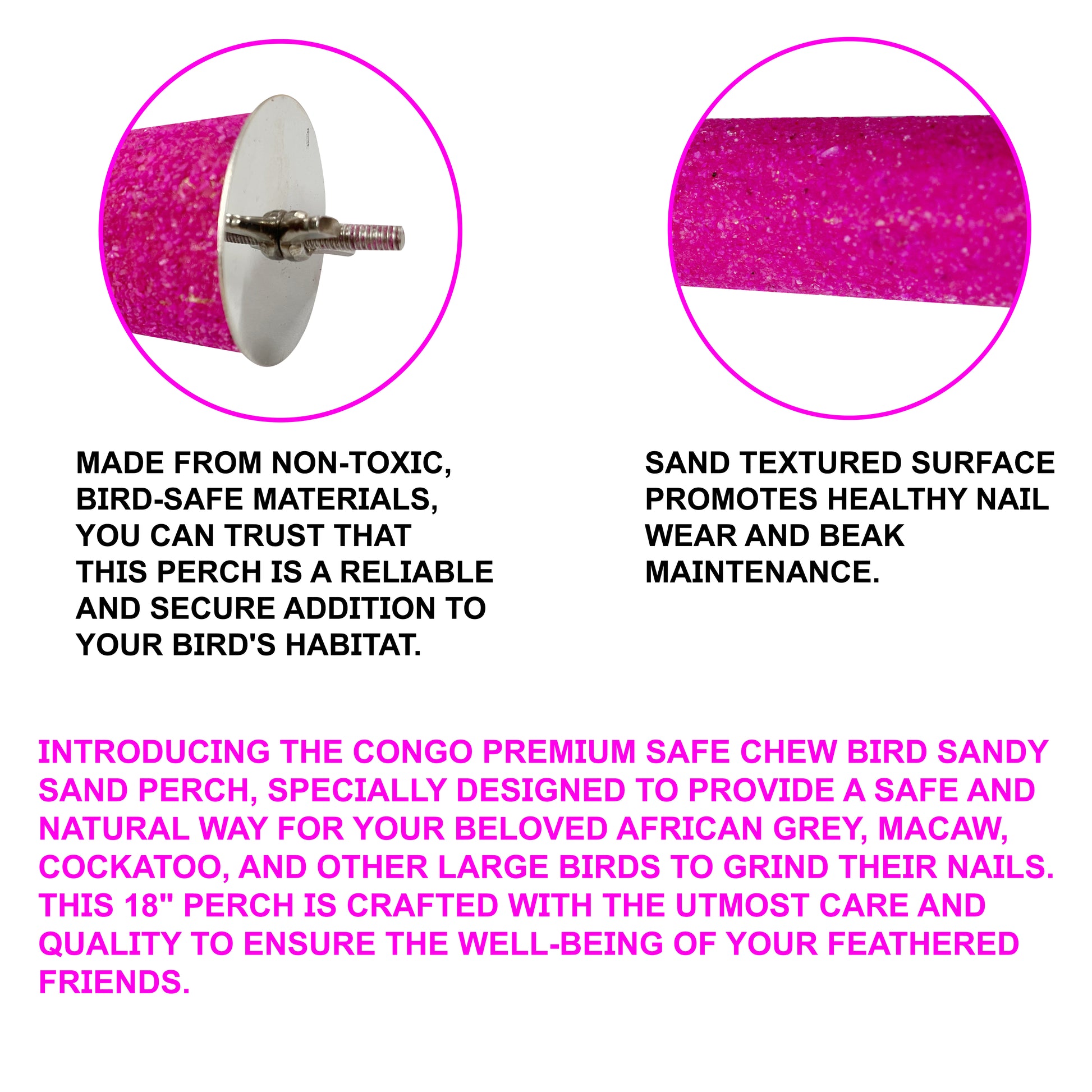 Congo Premium 18" Safe Chew Bird Sandy Sand Perch for Grinding Nail for African, Macaw, Cockatoos and Other Large Birds