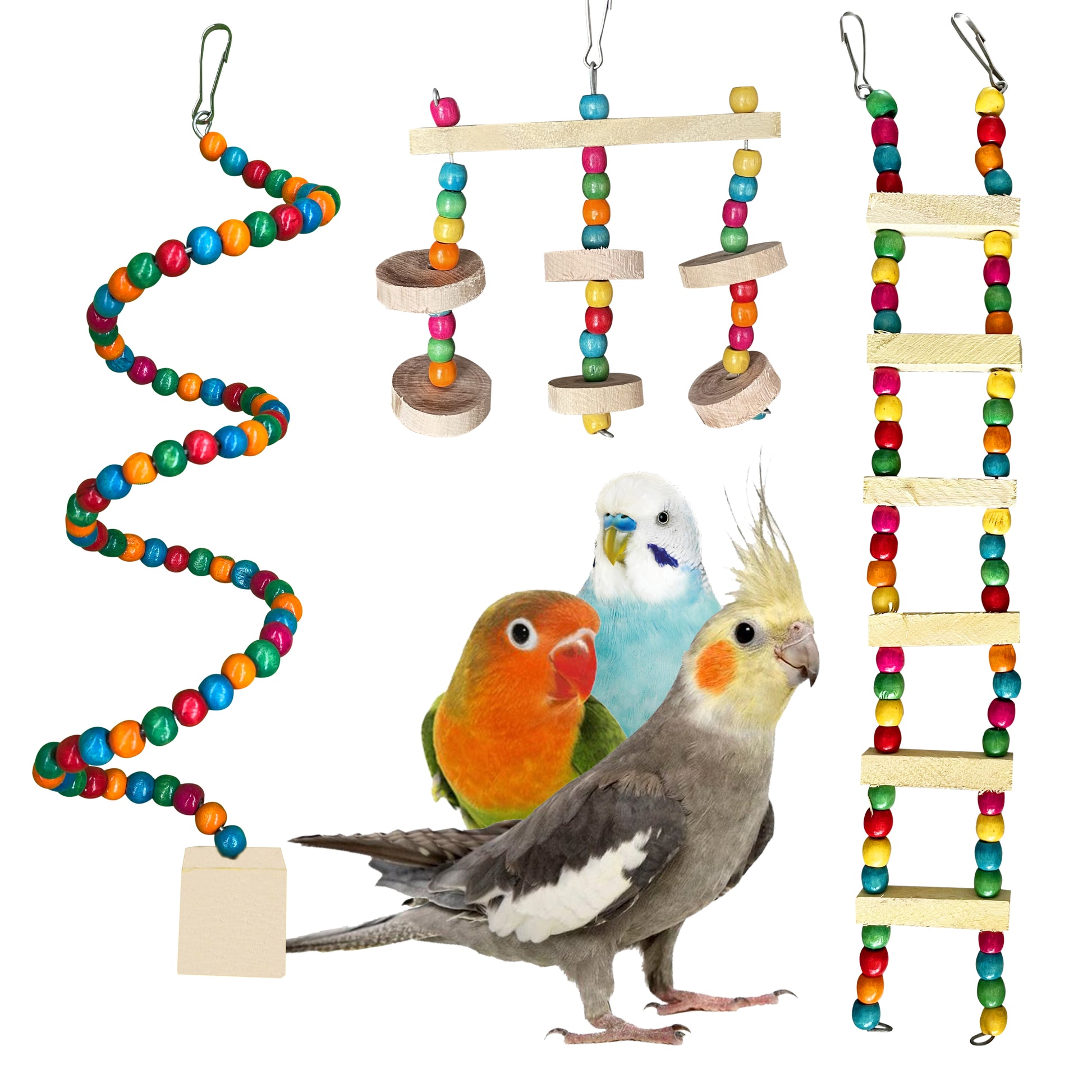 Congo Set of 3 Colored Ladder, Hanging Spiral and Chew Toy Combo Pack for Budgies, Lovebirds, Finches, Cockatiel Set of 1 (Piece of 3)