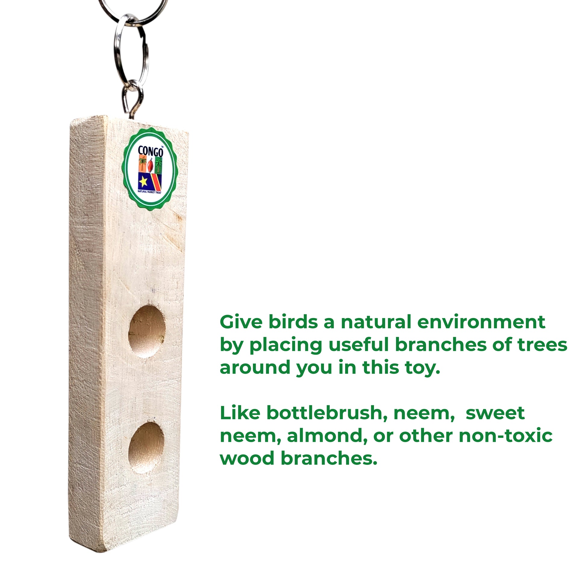Give birds a natural environment by placing useful branches of trees around you in this toy. Like bottlebrush, neem, sweet neem, almond, or other non-toxic wood branches.