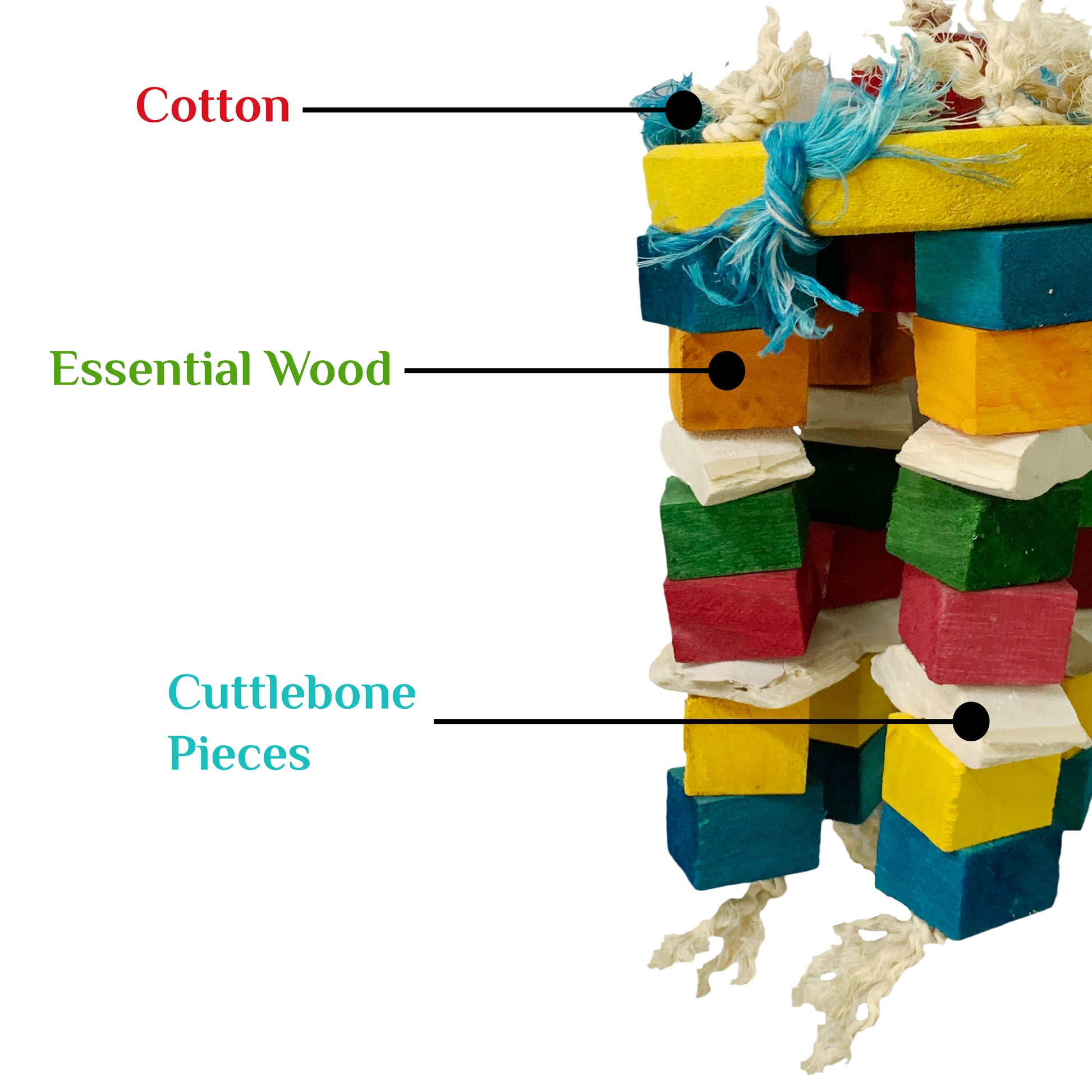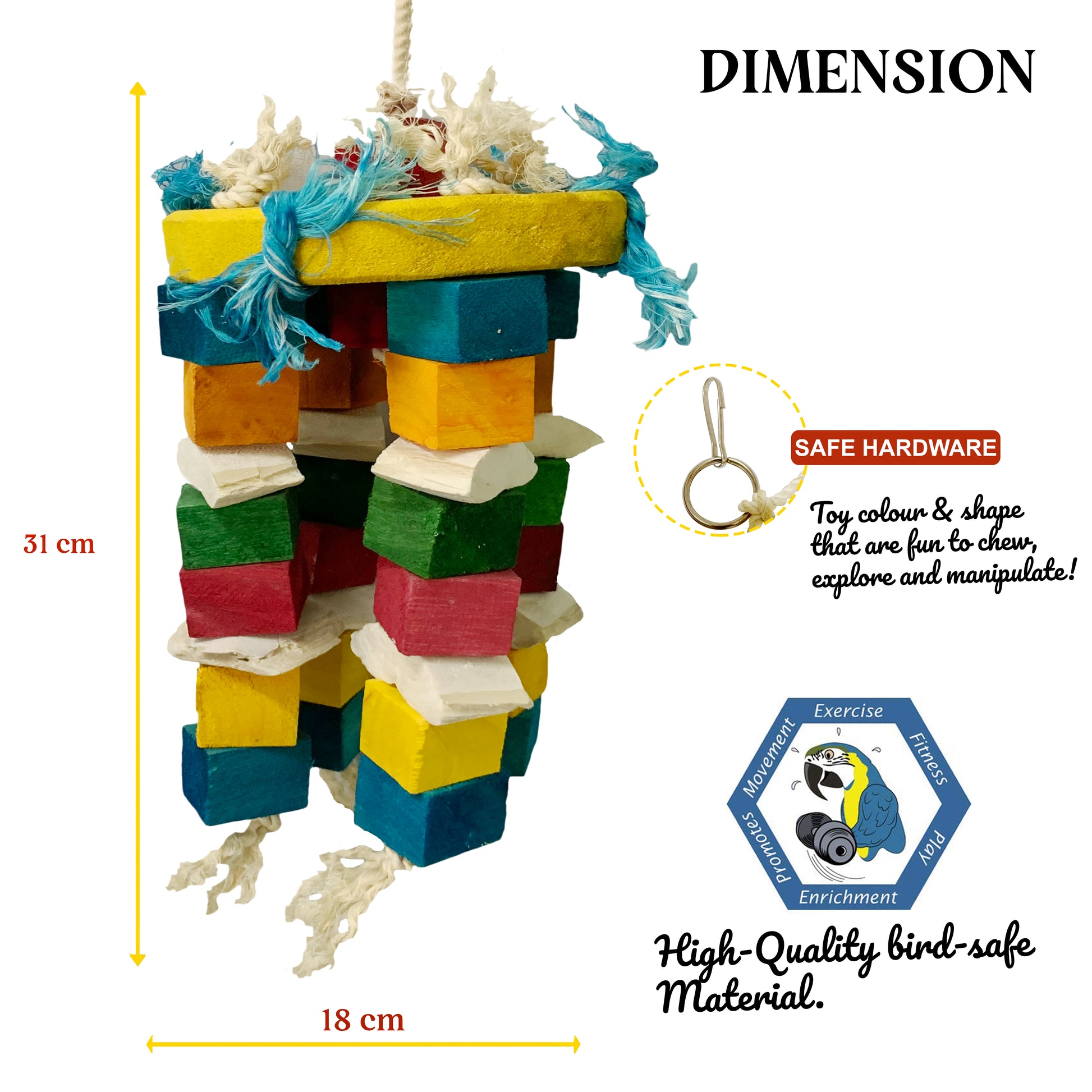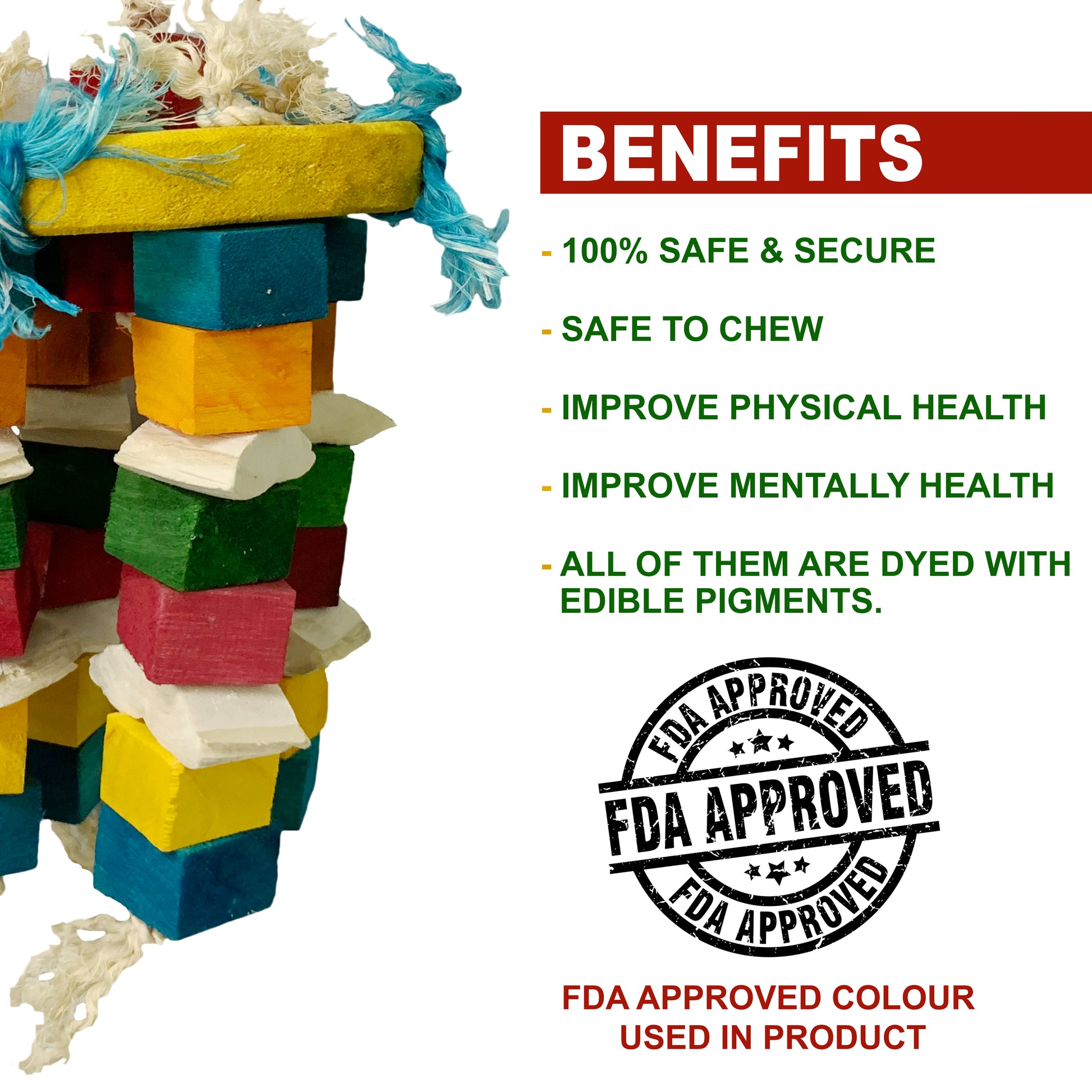 - PARROT ESSENTIAL TOY: The bird toy provides essential physical activity to keep your feather friends stable and happy, and improve your bird's health. If your parrot enjoys spending time chewing and playing with the toy, this toy is one of the best choices for you. This product is colorful, well-made, durable, which satiates their natural urge to chew.