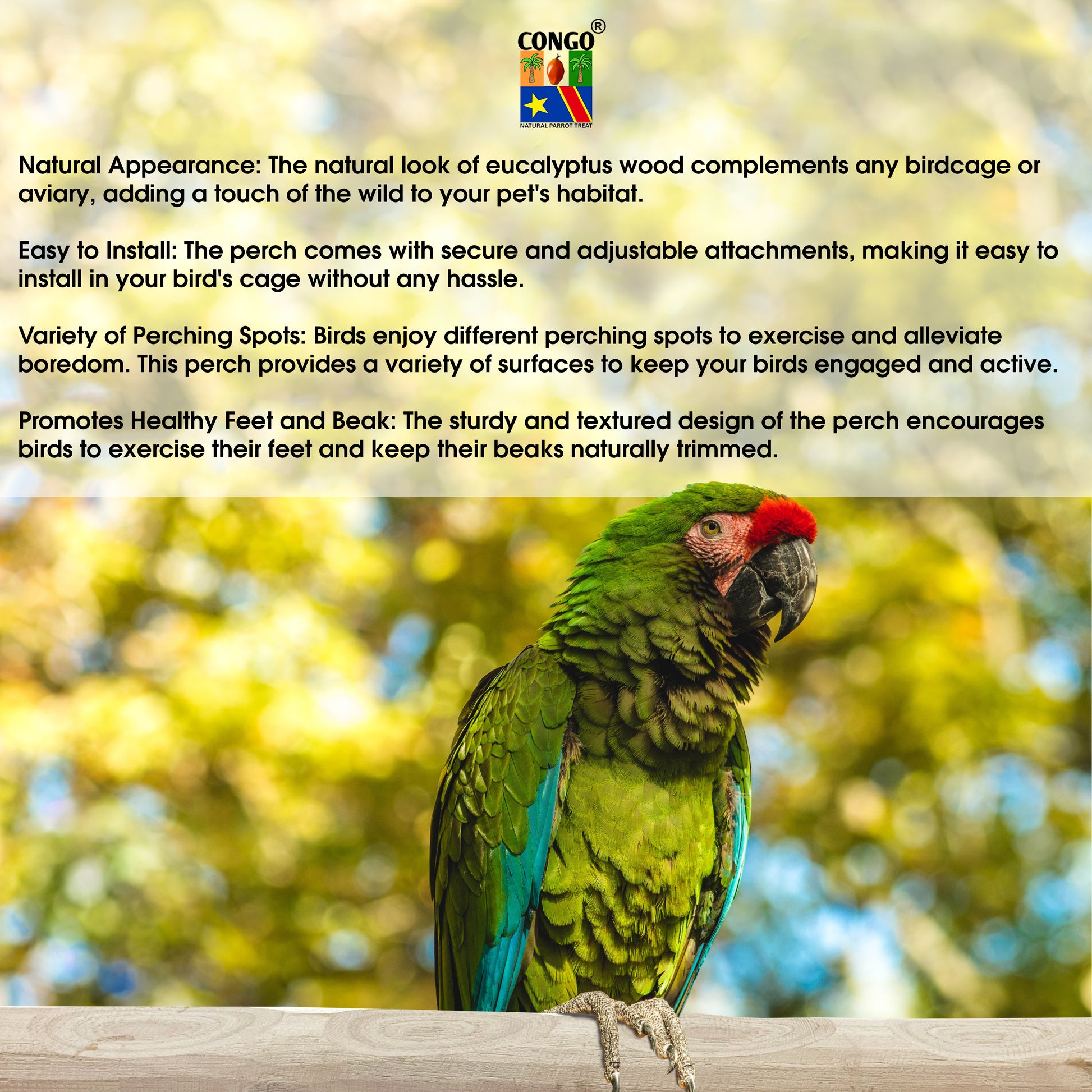 Congo® 18" Inch Dotted Perch Made with Safe Eucalyptus Wood for African Grey, Macaw, Cockatoos, Amazon and Other Big Birds (Piece of 01)